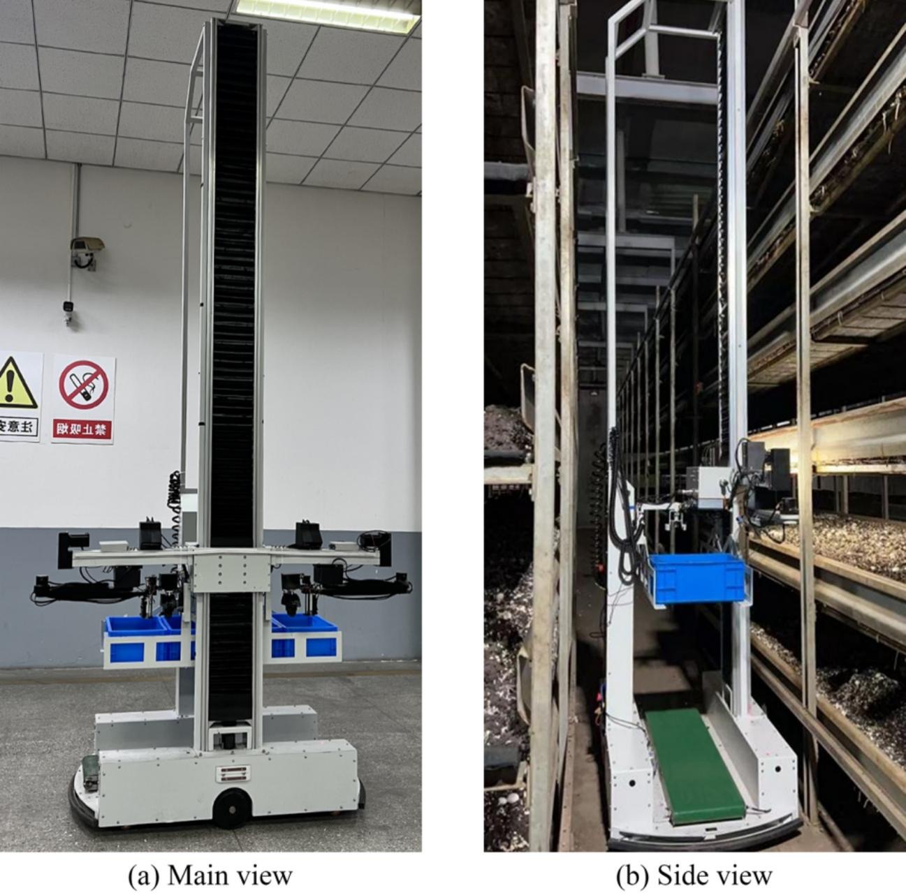 在蘑菇工厂进行了实地采收试验。结果表明:机器人的识别与定位误差小于1厘米,采收成功率达99.3%,蘑菇损伤率低于3.2%,平均采收效率为每小时20.8公斤,相当于一名熟练工人的作业效率。试验结果验证了机器人结构设计的合理性、视觉算法的准确性与控制系统的鲁棒性,表明该系统能够有效实现多层菇床的自动化采收作业。